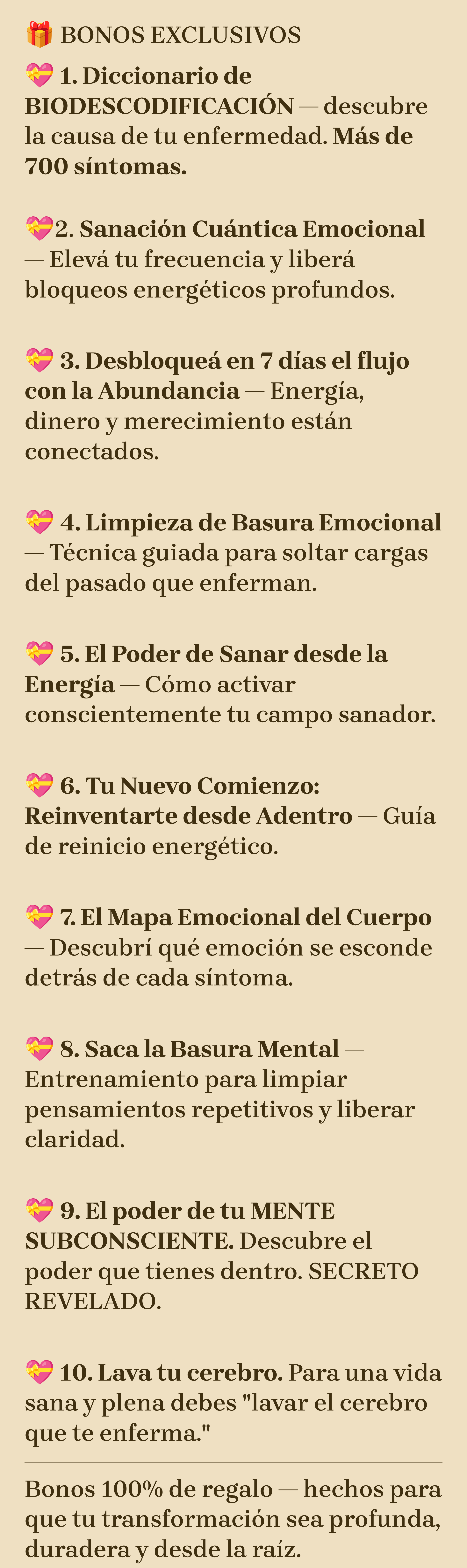 👉 Solo $5.999 por mes — Por menos de lo que gastás en una salida rápida, podés empezar a sanar tu cuerpo y tus emociones desde la raíz.
