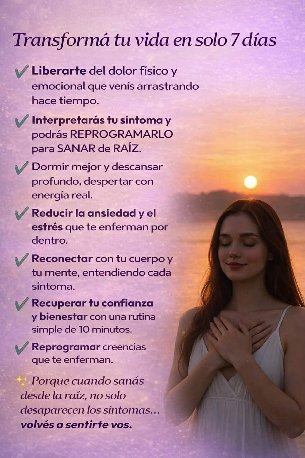 En apenas 7 días vas a empezar a sentir alivio físico, paz interior y una conexión real con tu energía.